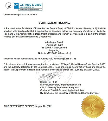FDA Certificate Of Free Sale