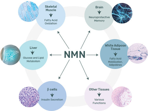 Type 2 Diabetes-associated pathophysiologies. Mice given NMN displayed increased insulin sensitivity, decreased blood sugar and overall improvements in metabolic health markers.